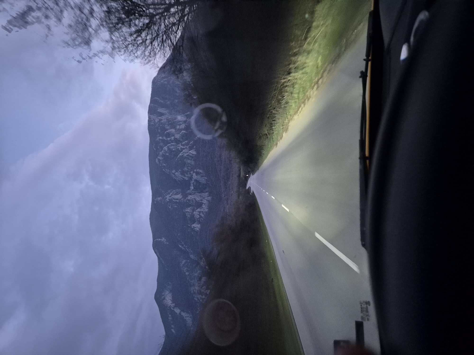 - "The image depicts a rural road scene in Kravoder, Bulgaria, at dusk or early night, viewed from the interior of a moving vehicle" by FM-Ra3hq2, licensed under CC BY 4.0