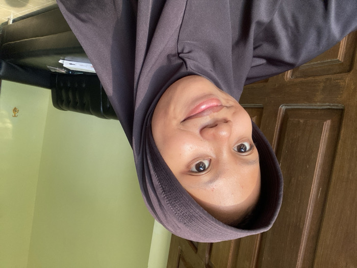 This indoor image, located in Gadingrejo, Indonesia, depicts a young adult female posing for a close-up portrait