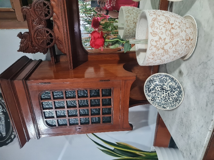 - "This interior scene, located in Bandung City, Indonesia, presents a collection of decorative items arranged on and above a white marble-topped surface" by FM-SIX1C2, licensed under CC BY 4.0