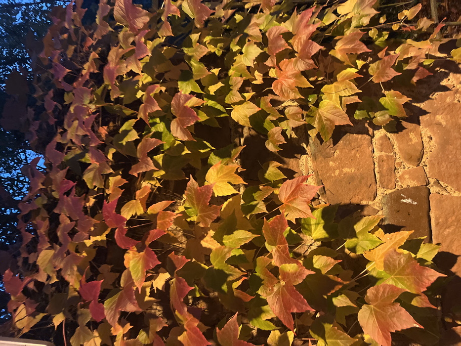 - "A stone wall in Obernai, France, is depicted vertically, extensively covered with dense, autumnal vine foliage" by FM-rLGAz2, licensed under CC BY 4.0