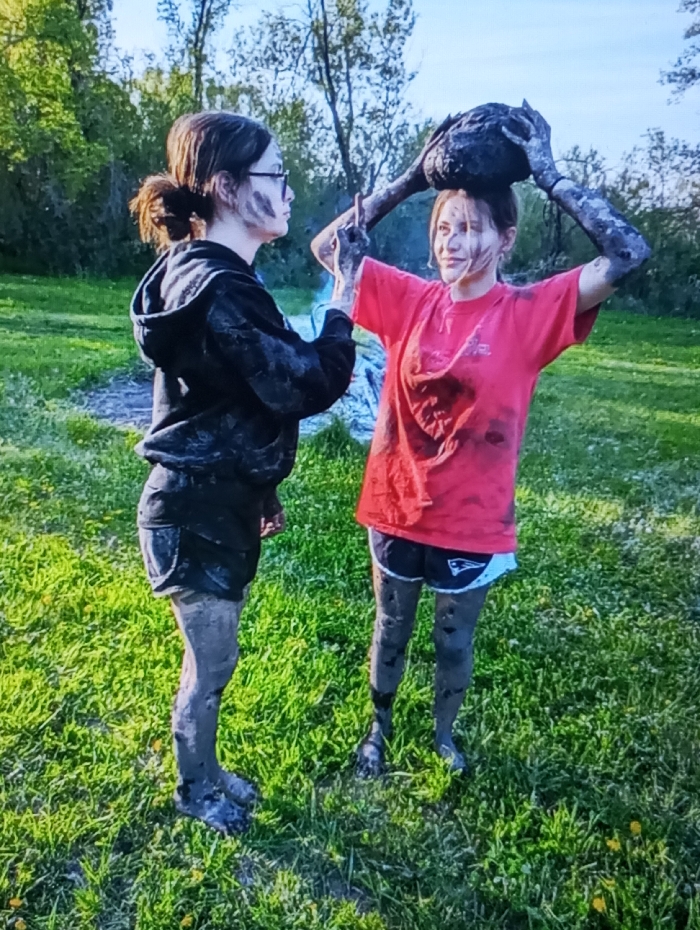 - "Two young females, heavily covered in dark mud, stand outdoors in a grassy area within the city of Bulamikcha, Uzbekistan" by FM-1o2DD3, licensed under CC BY 4.0