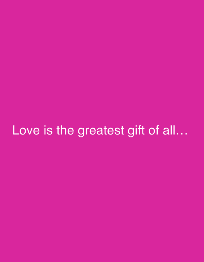 The image displays a solid fuchsia background. Centered horizontally and vertically on this background is white text, which reads: "Love is the greatest gift of all...". There are no other discernible subjects, objects, people, actions, or interactions depicted. The image does not contain any visual elements indicating a physical location within Loganville, United States, or any other geographical area, as it is a digital graphic with text on a monochromatic field.