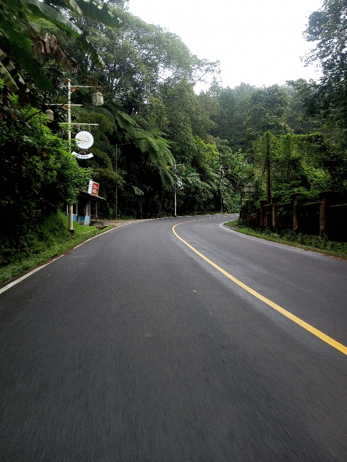 - "The image depicts a winding, dark grey asphalt road in the city of Bangtsho, Bhutan, bordered by dense green vegetation under an overcast, bright white sky" by FM-9wSr13, licensed under CC BY 4.0