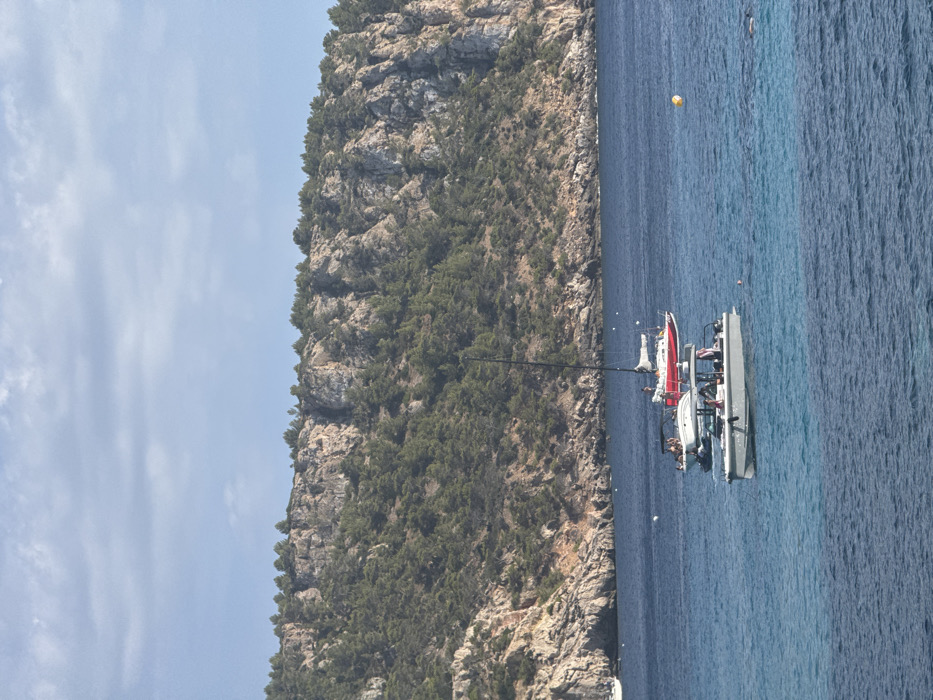 - "The image depicts a coastal scene in Sant Elm, Spain, dominated by a large, forested island or landmass and several boats on the water under a partly cloudy sky" by FM-BS4Ql2, licensed under CC BY 4.0