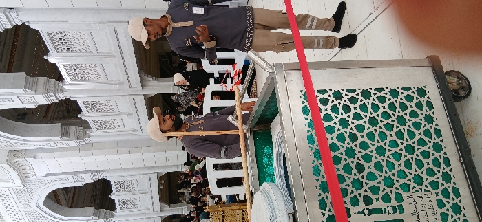 The image depicts a scene within the Grand Mosque (Masjid al-Haram) in Makkah Al Mukarramah, Saudi Arabia