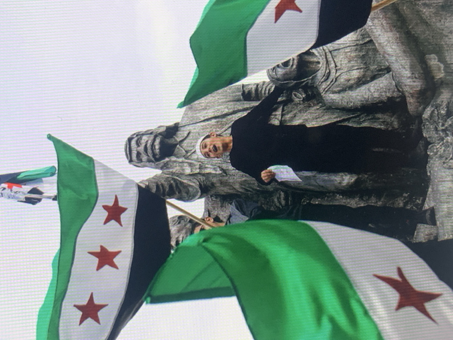 - "The scene depicts a daylight protest or demonstration occurring on or around a large, multi-figure stone or bronze monument in Al-Mazza Municipality, Syria" by FM-q7EDs2, licensed under CC BY 4.0