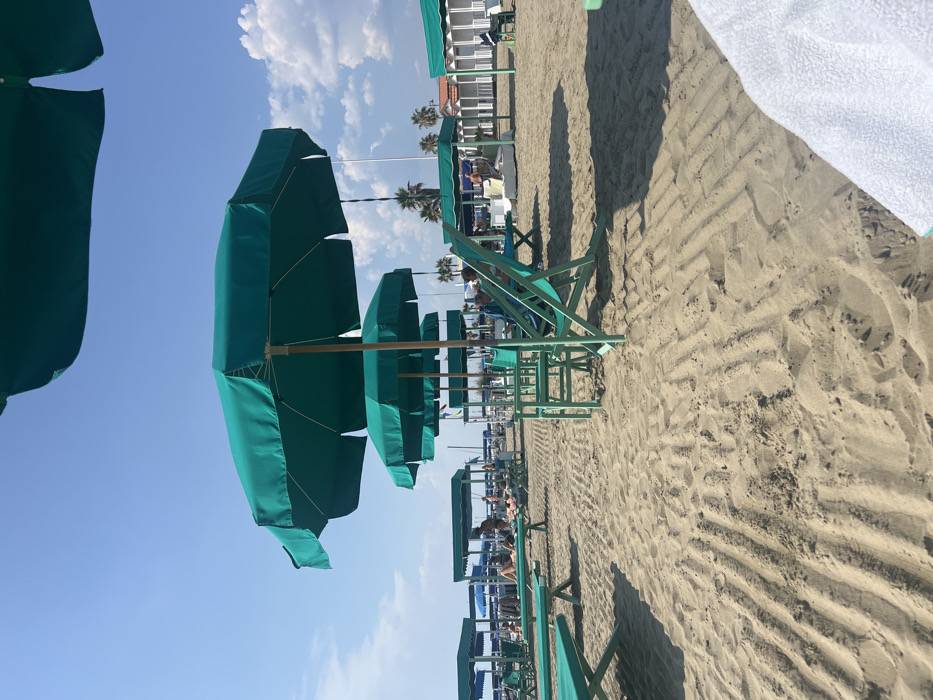 - "The image displays a sandy beach in Forte dei Marmi, Italy, characterized by organized rows of beach furniture under a clear sky" by FM-HiAX52, licensed under CC BY 4.0