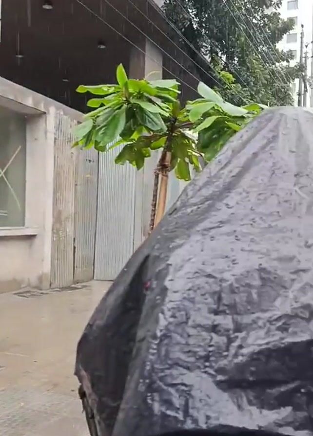 The video, filmed on a rainy day, shows a city street in Dhaka, Bangladesh
