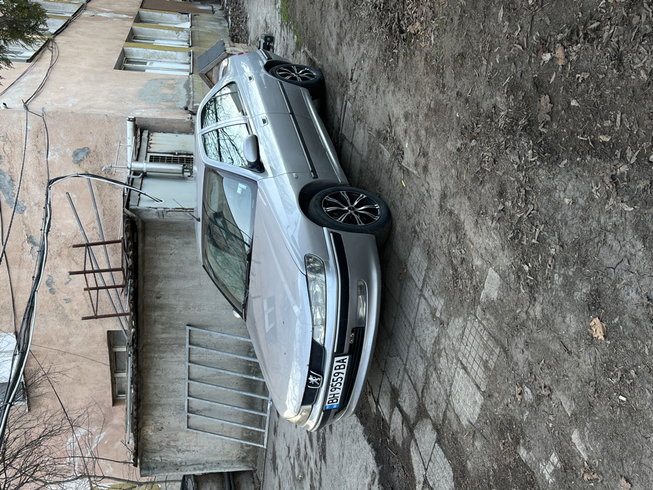 The image captures a static outdoor scene in Busmantsi, Bulgaria, focused on a silver Peugeot 406 sedan