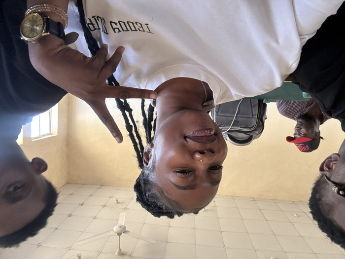 The image displays an indoor scene, reportedly located in Rafin Par, Nigeria, featuring four individuals