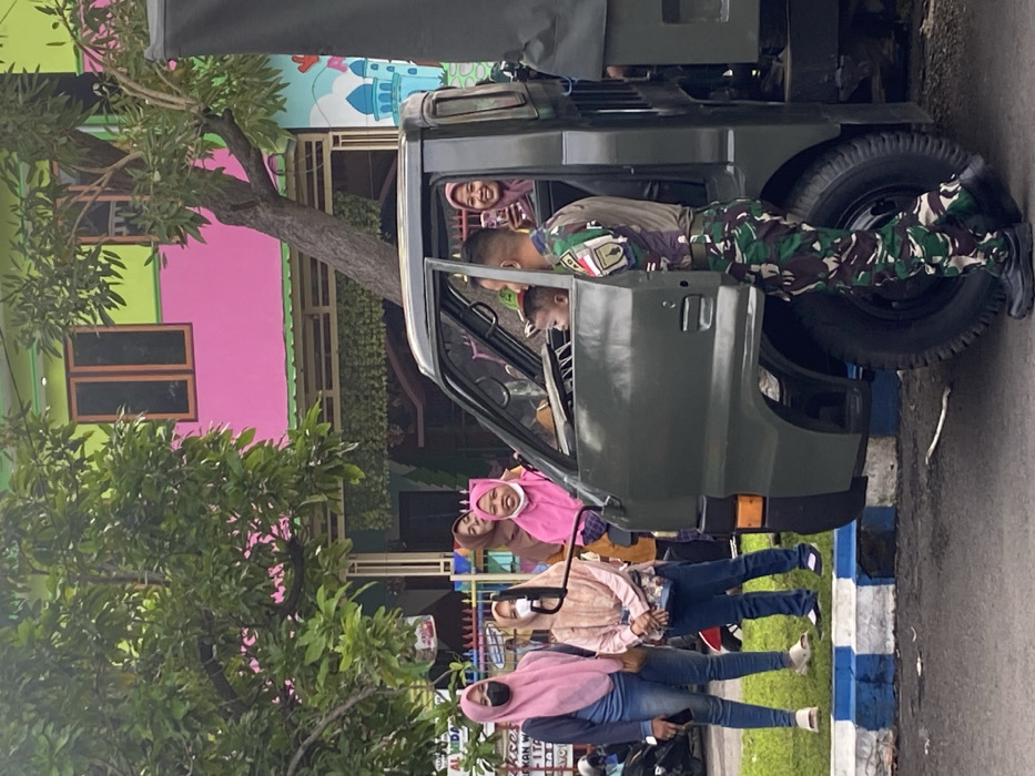 - "An olive drab military vehicle parked roadside is swarmed by women in hijabs" by FM-htxI33, licensed under CC BY 4.0