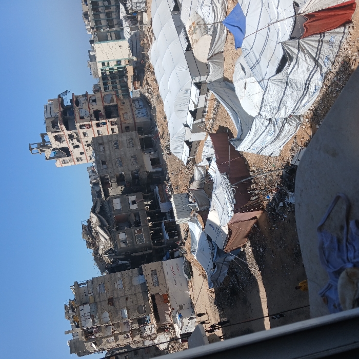 - "This image depicts a severely damaged urban landscape in Gaza City, Palestinian Territory, under a clear blue sky" by FM-lJnzj1, licensed under CC BY 4.0