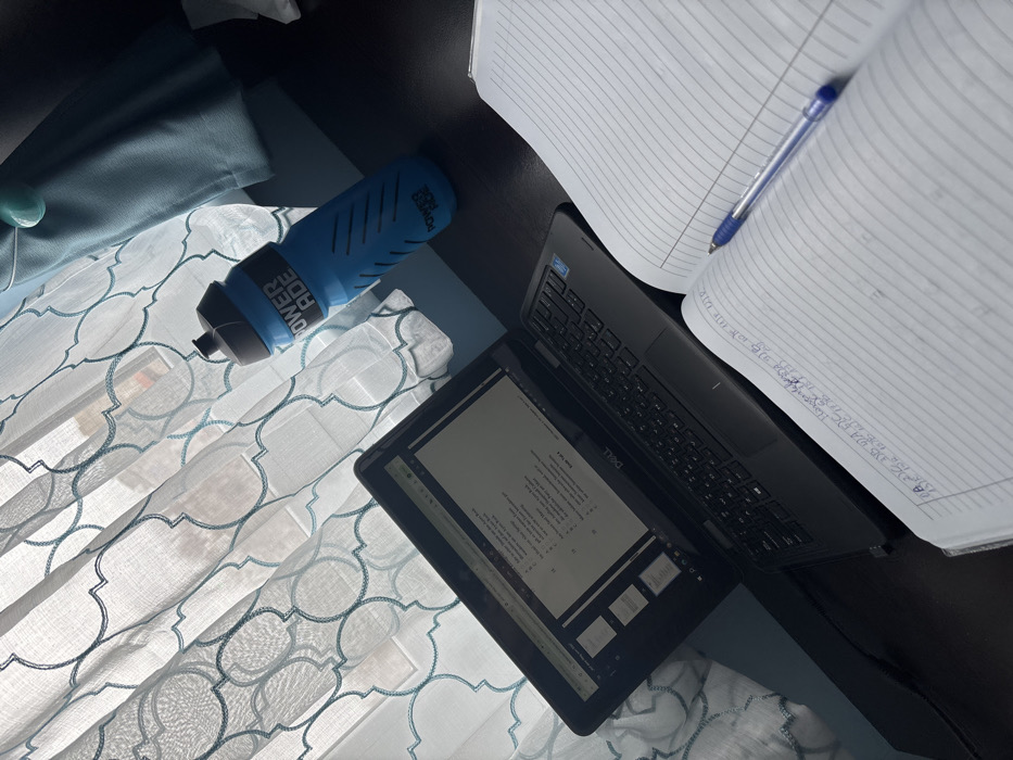 The scene depicts an indoor study or work area, presumably located within the city of Varna, Bulgaria; however, the specific address or precise location within the city cannot be determined from the visual evidence