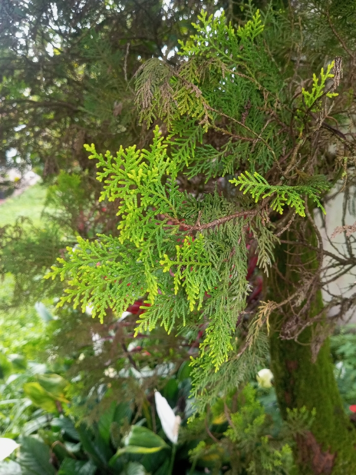 - "This image presents a close-up, vertical composition of coniferous foliage, identified as likely belonging to an arborvitae (Thuja species), situated in Tecuci, Romania" by FM-ioD353, licensed under CC BY 4.0