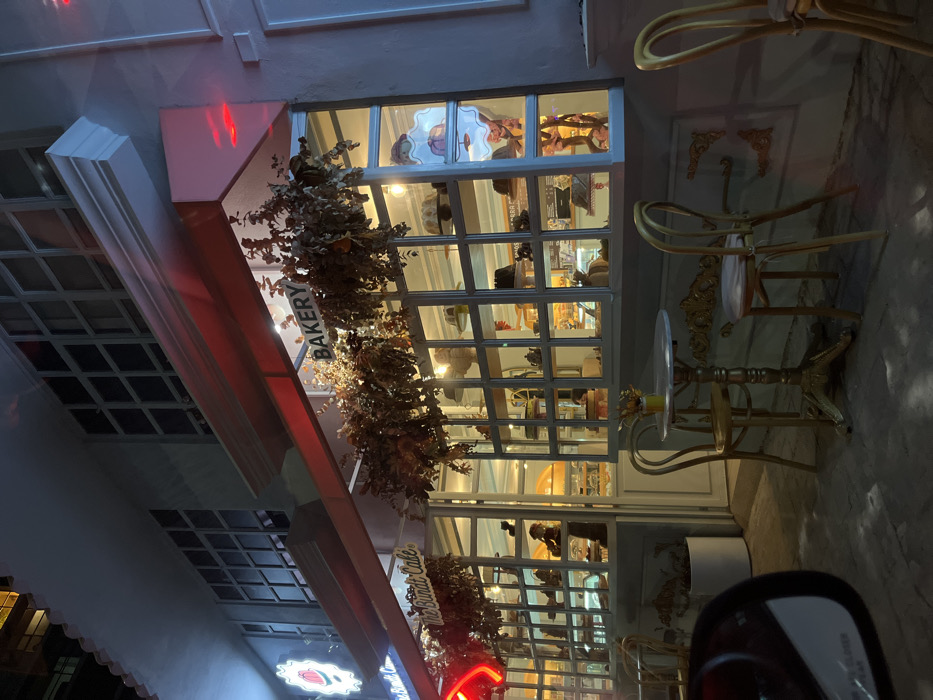 - "A bakery facade is captured at night, featuring a pink awning with the word "BAKERY" vertically printed" by FM-gVUWz2, licensed under CC BY 4.0