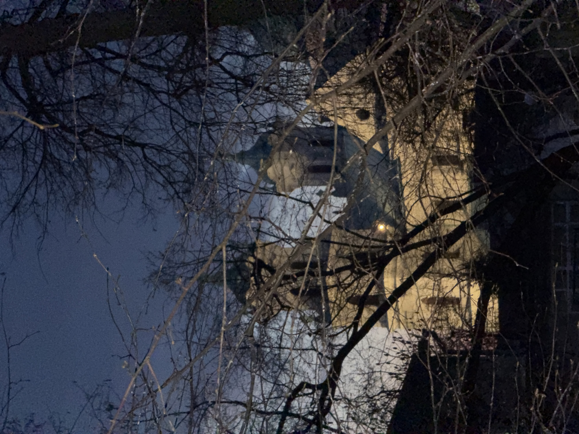 - "The image depicts a night scene in Hrodna, Belarus, with a building visible through the branches of bare trees" by FM-6mz2b2, licensed under CC BY 4.0