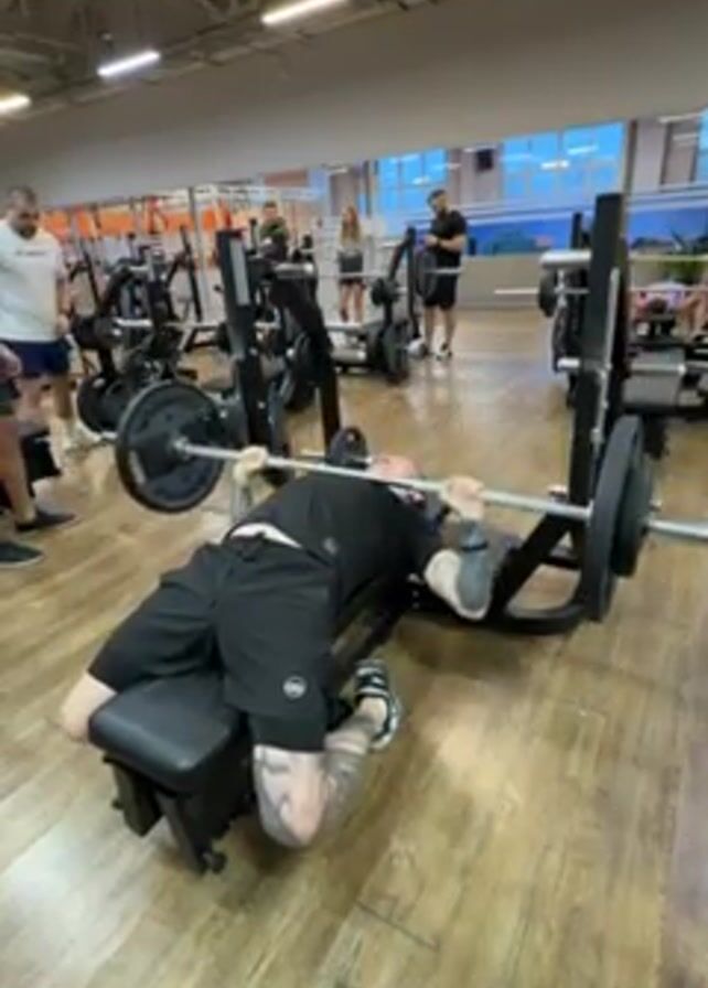 man performing a bench press in a gym