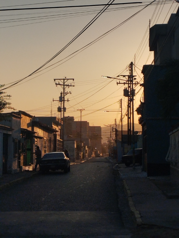- "The image displays an urban street scene in Guacara, Venezuela, during either sunrise or sunset, evidenced by the low-angle, orange-yellow light and long shadows" by FM-uiwdr1, licensed under CC BY 4.0