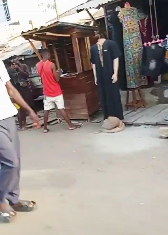 The video depicts a street scene in what appears to be an African town or neighborhood