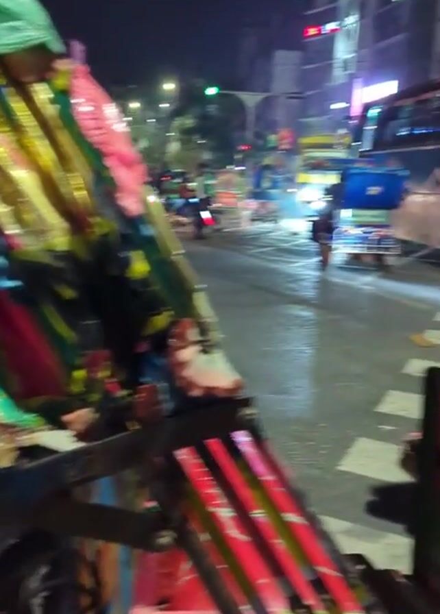 The video depicts a night scene in a city in Bangladesh
