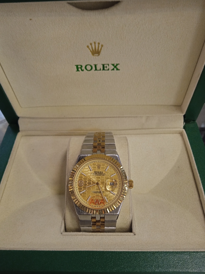 - "An open, dark green and cream-lined Rolex watch box is depicted, positioned indoors in Barza Municipality, Syria" by FM-zlWXg1, licensed under CC BY 4.0