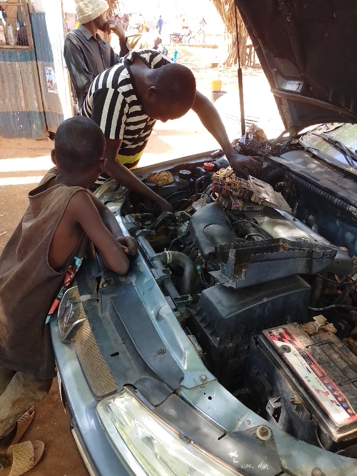 - "The scene, located in Yelwa, Nigeria, depicts an outdoor automotive repair operation under bright daylight" by FM-yIzVQ2, licensed under CC BY 4.0