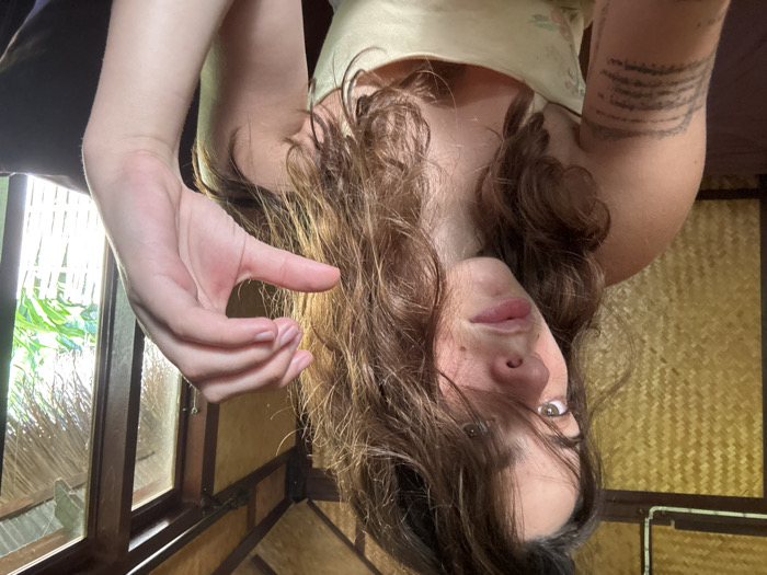 An adult female is depicted indoors in Pai, Thailand