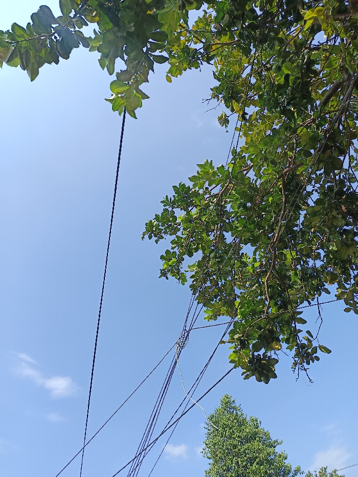 - "This image, captured in Sabandar, Indonesia, depicts an outdoor scene viewed from below, looking upwards towards a blue sky with minimal scattered white cumulus clouds" by FM-WRTkH2, licensed under CC BY 4.0