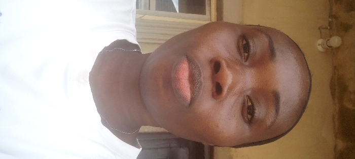 A close-up, front-facing portrait in Agunmo, Nigeria, captures an adult individual with dark skin, visible from the upper chest