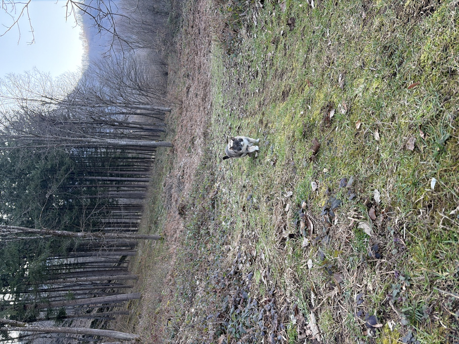 - "A domestic short-haired cat with mottled gray, white, and brown fur is observed walking on a narrow dirt path in a forested area near Ribaritsa, Bulgaria" by FM-sGIH73, licensed under CC BY 4.0