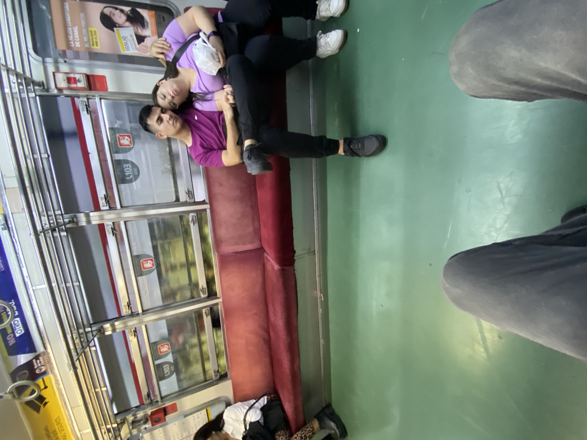 - "A medium shot from the perspective of a passenger in a Buenos Aires subway car shows a couple lying across the car's seats" by FM-pmdtd2, licensed under CC BY 4.0