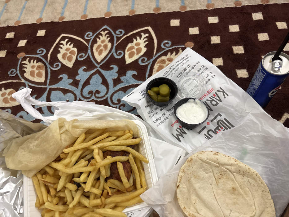 - "A takeaway meal is presented on a patterned brown, light blue, and beige carpet" by FM-qYIdG3, licensed under CC BY 4.0