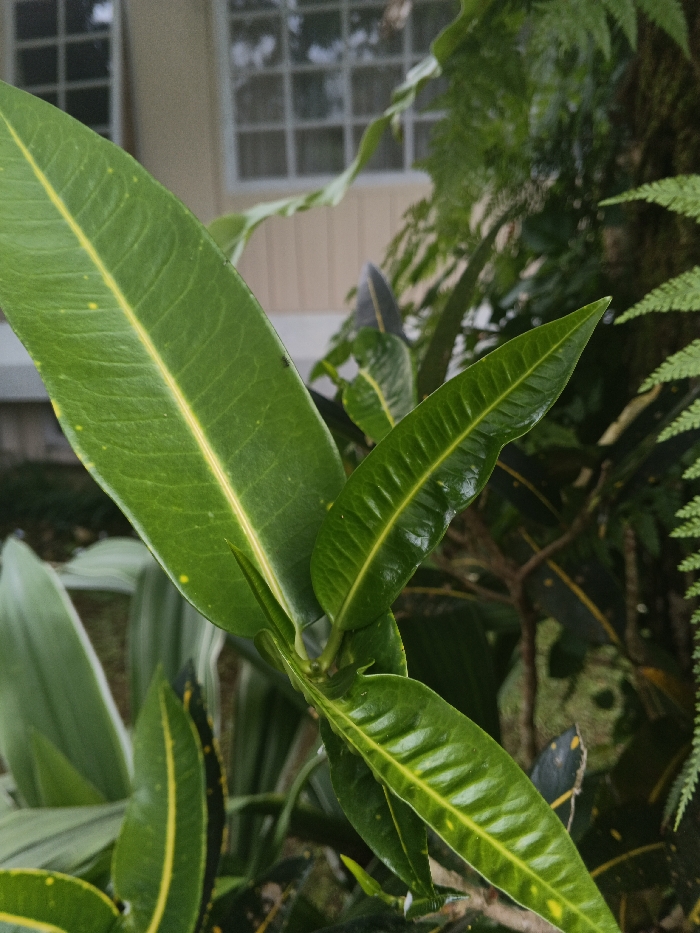 - "A close-up shows vibrant green leaves with prominent yellow veins of a croton plant" by FM-k4Qz62, licensed under CC BY 4.0