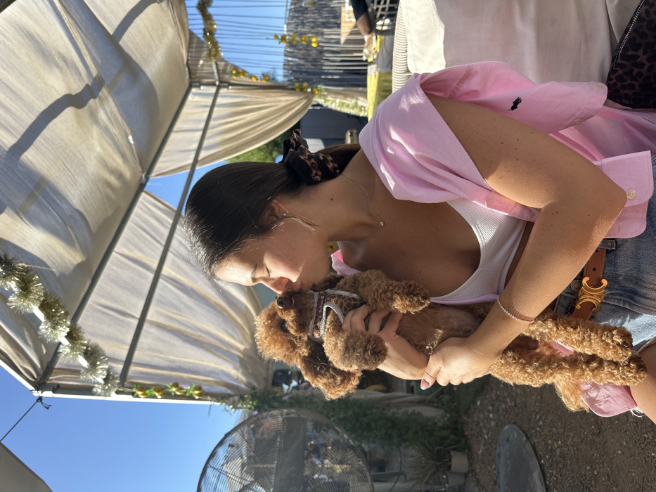 - "A young adult female is depicted holding and kissing a small, light brown, curly-haired dog outdoors in Kfar Ruth, Israel" by FM-xsYuv2, licensed under CC BY 4.0