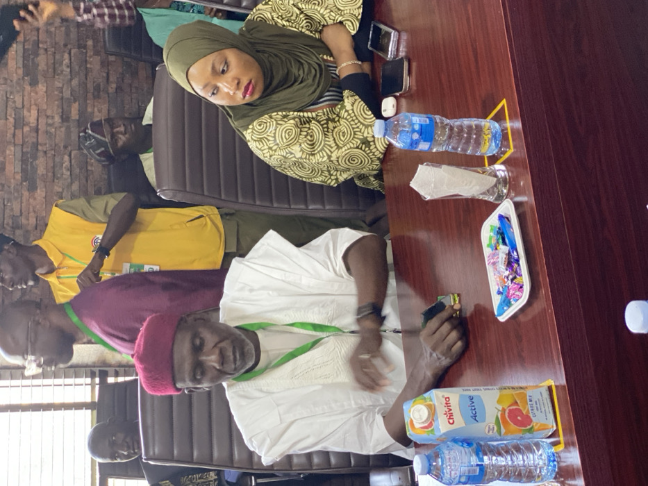 The scene takes place indoors, in what is identified as a location in Gwagwada, Nigeria, within a conference or meeting room setting
