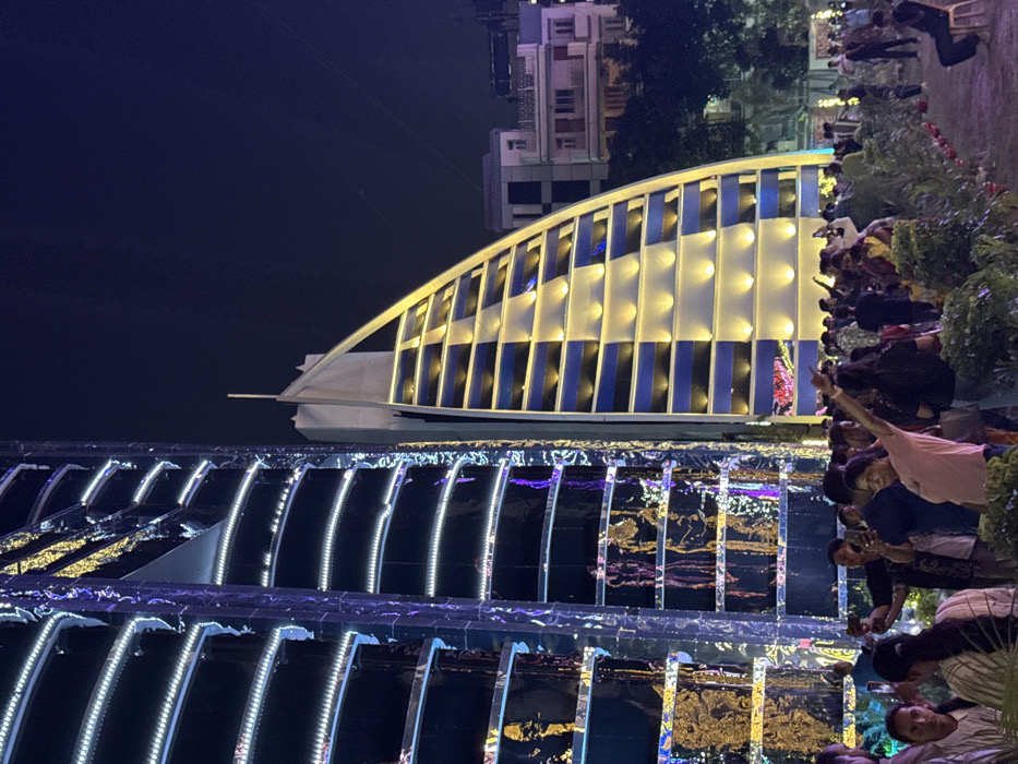 - "The image displays a nighttime scene in Bidhannagar, India, featuring two illuminated architectural structures and a large crowd of people" by FM-KoaHv1, licensed under CC BY 4.0