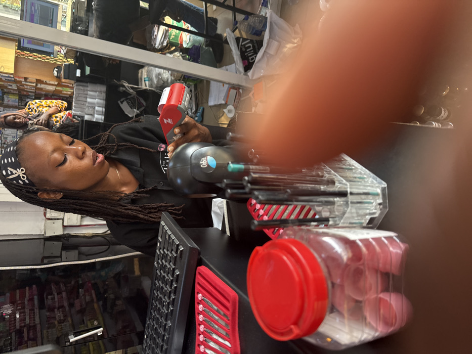 - "The image depicts a retail interior in Galadimawa, Nigeria, centered on a young Black woman working at a black counter" by FM-drzm52, licensed under CC BY 4.0