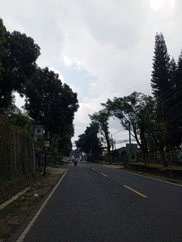 The image depicts a straight asphalt road in the city of Multhan, India, under an overcast sky with patches of brighter cloud