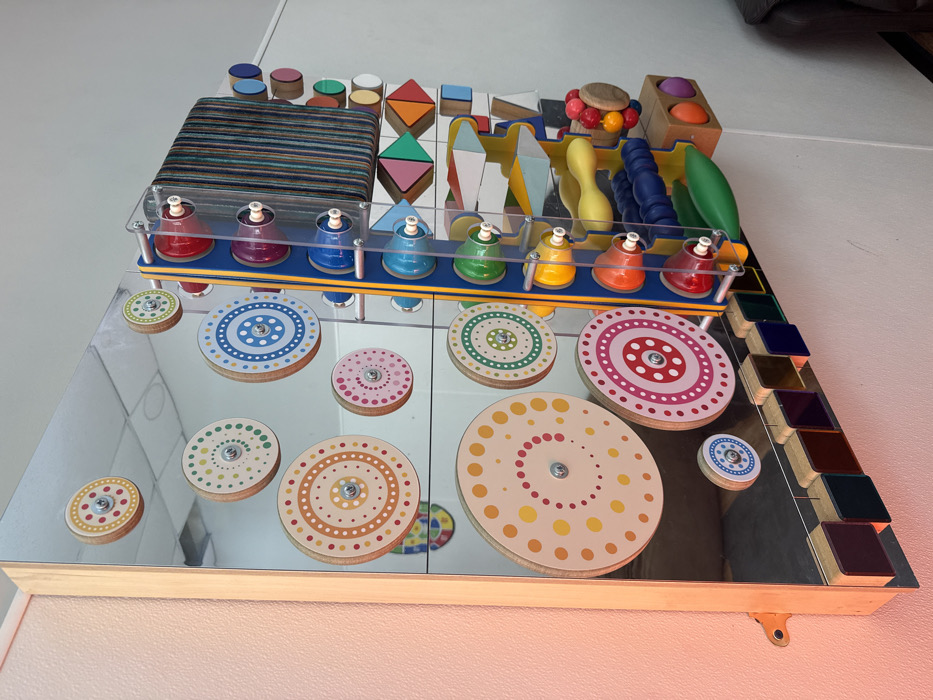 - "A wall-mounted sensory activity board is depicted within an indoor setting in Loganville, United States" by FM-AodXs2, licensed under CC BY 4.0