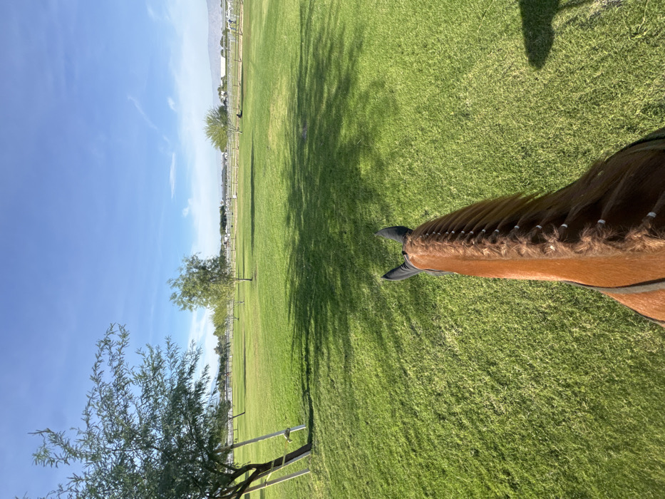 - "A horse's head and braided mane fill the lower right of the frame, with a black fly mask visible behind the ears" by FM-KbS6O2, licensed under CC BY 4.0