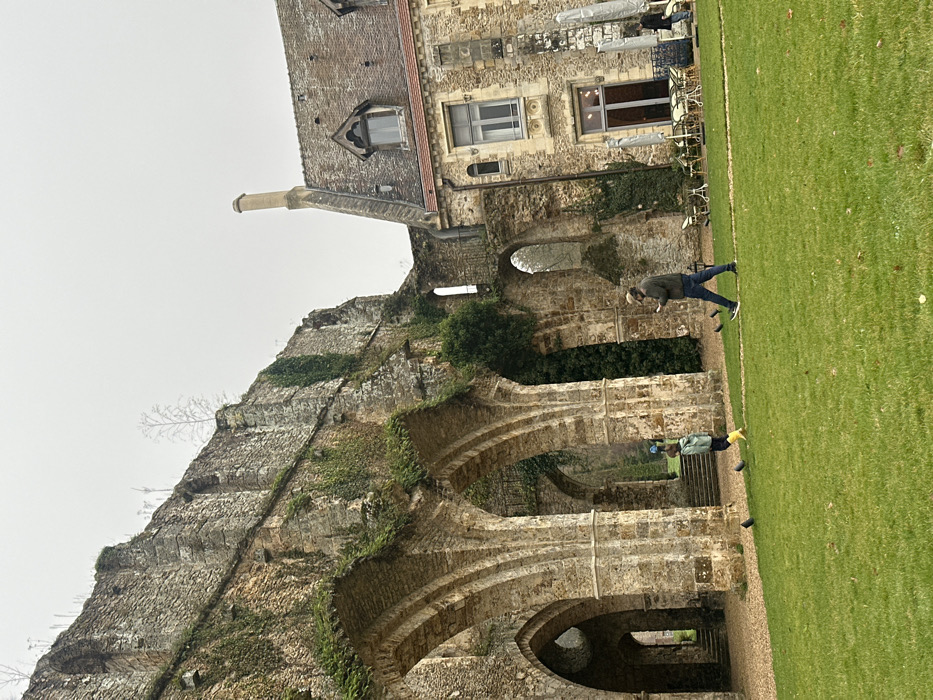 This image captures a scene at the Abbey of Vaux-de-Cernay in Cernay-la-Ville, France, under an overcast sky