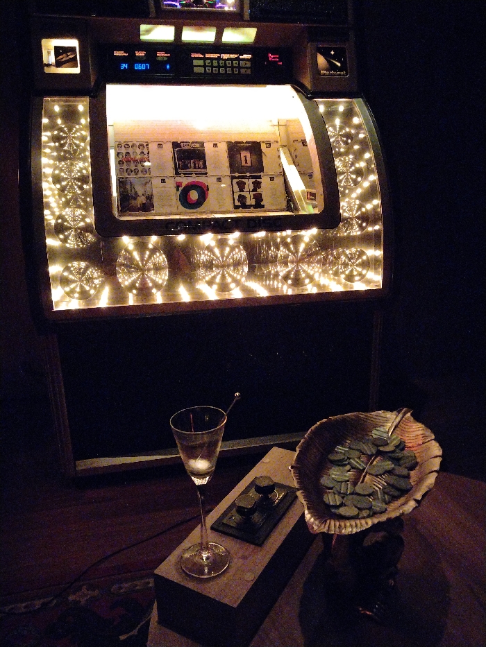 - "A brightly illuminated, vintage-style CD jukebox dominates a dimly lit interior scene in Buenos Aires, Argentina" by FM-ufozy1, licensed under CC BY 4.0