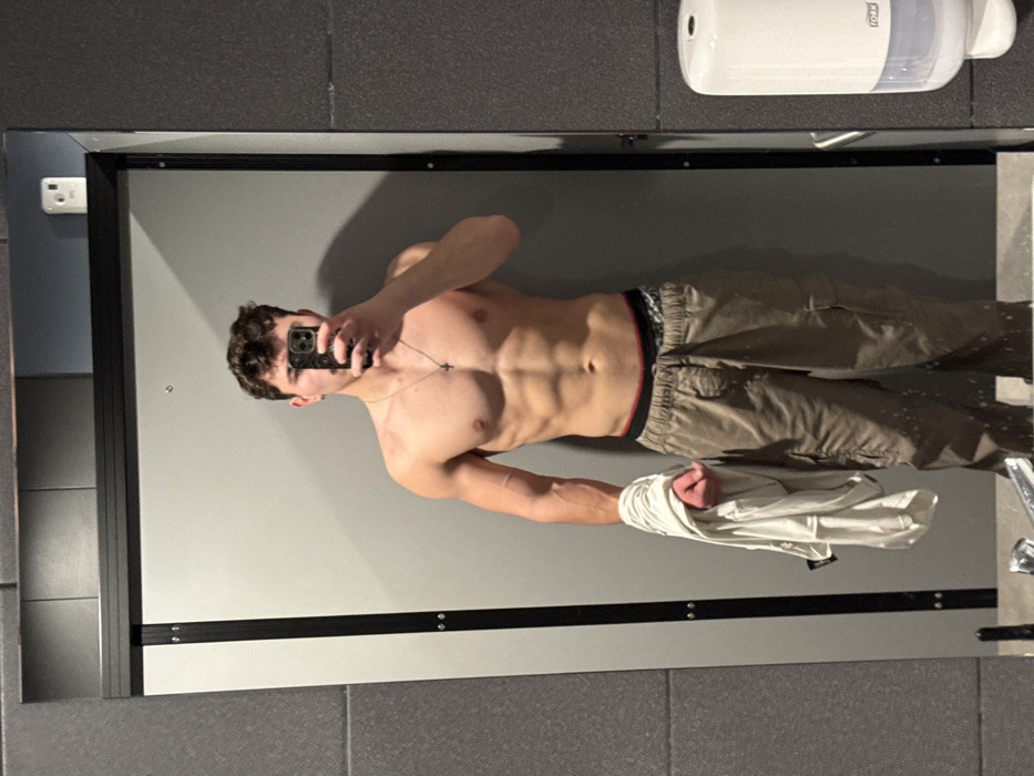 - "The image depicts a young, muscular male taking a mirror selfie in an interior setting, likely a public restroom or changing room, located in Chantepie, France" by FM-DALdZ2, licensed under CC BY 4.0
