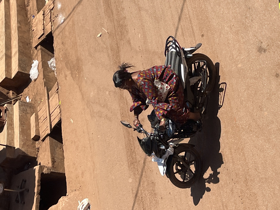 - "The image displays a forensic overhead view of a woman on a motorcycle on a reddish-brown dirt road in Labé, Guinea" by FM-w5W832, licensed under CC BY 4.0