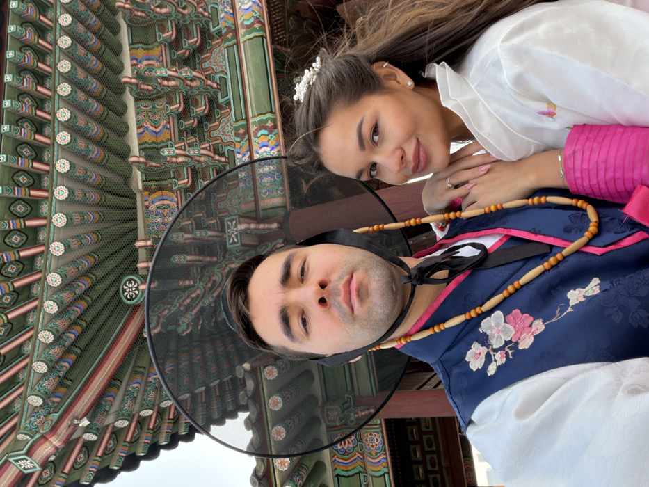 - "A woman and a man pose in front of a traditional Korean building" by FM-PcEqo1, licensed under CC BY 4.0