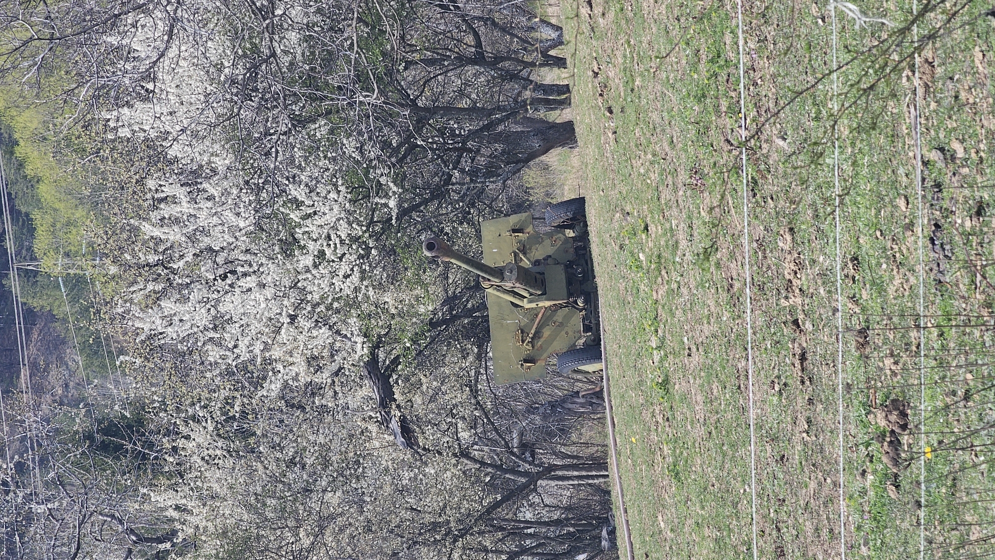 - "An artillery gun stands in Klisura, Bulgaria, nestled between trees in full white blossom and a grassy field" by FM-EPOZp2, licensed under CC BY 4.0