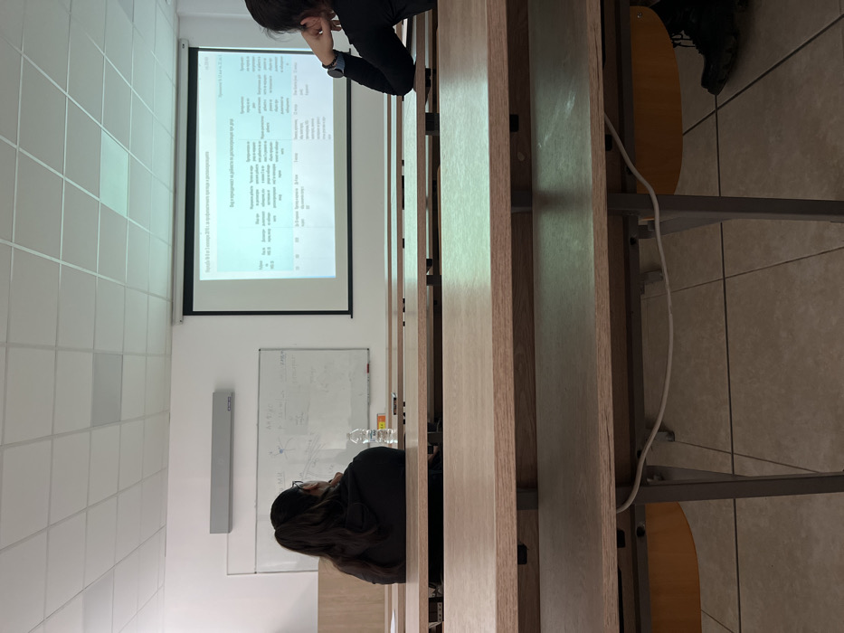 The image depicts an indoor classroom or lecture hall environment in Burgas, Bulgaria