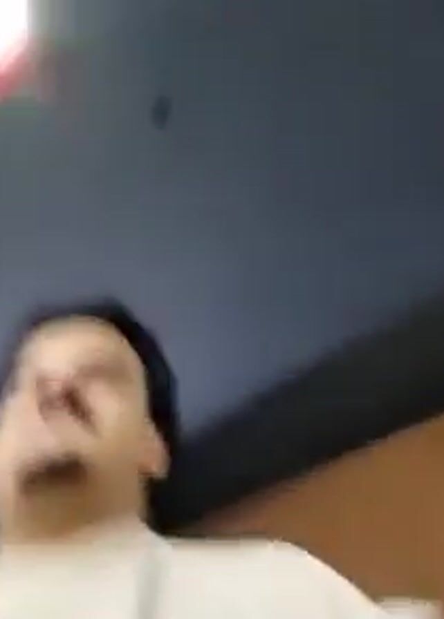 man with dark hair and a goatee, wearing a white turtleneck sweater. He is indoors with a dark ceiling overhead and what appears to be a wooden wall behind him. He looks directly at the camera with a relatively neutral expression. He then picks up a blue and white paper cup and takes a drink.