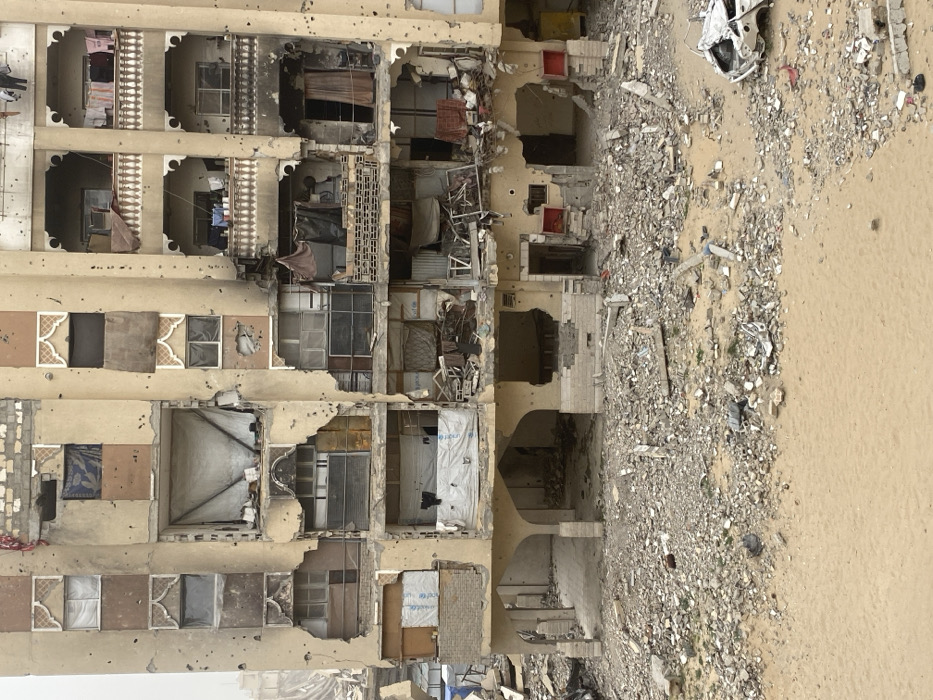 - "This image depicts a heavily damaged multi-story residential building in Khan Yunis, Palestinian Territory" by FM-U9GOy1, licensed under CC BY 4.0