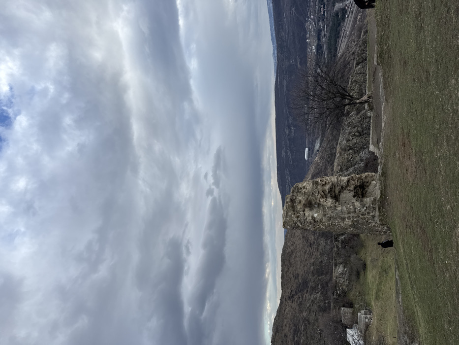 - "The image presents an elevated panoramic view of a landscape in Mtskheta, Georgia, under a predominantly overcast sky with dense gray clouds, revealing a small patch of blue sky in the upper center-right" by FM-GMxhS2, licensed under CC BY 4.0